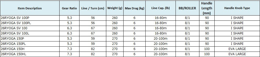 Brake Systems: The 100 size models utilize the SV BOOST braking system for versatile, stress-free casting of a wide range of lure weights, while the 150 size models use the MAG-Z BOOST system, optimized for long-distance casting of medium-to-heavy lures.